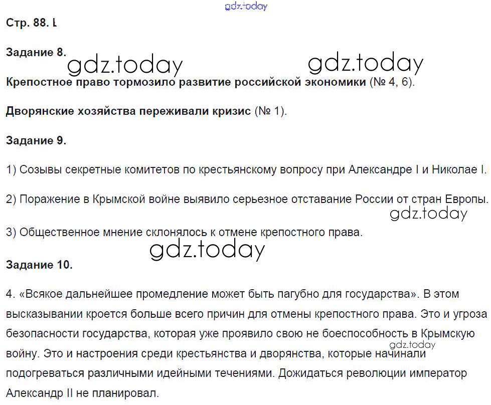 На страницах сайта gdz.today вы найдете учебный и вспомогательный материал, направленный на улучшения знаний школьной программы. ГДЗ - онлайн мир знаний Решение к части 1. Страницы 88 Рабочей тетради по Истории России для 9 класса Чернова Экзамен УМК 2017