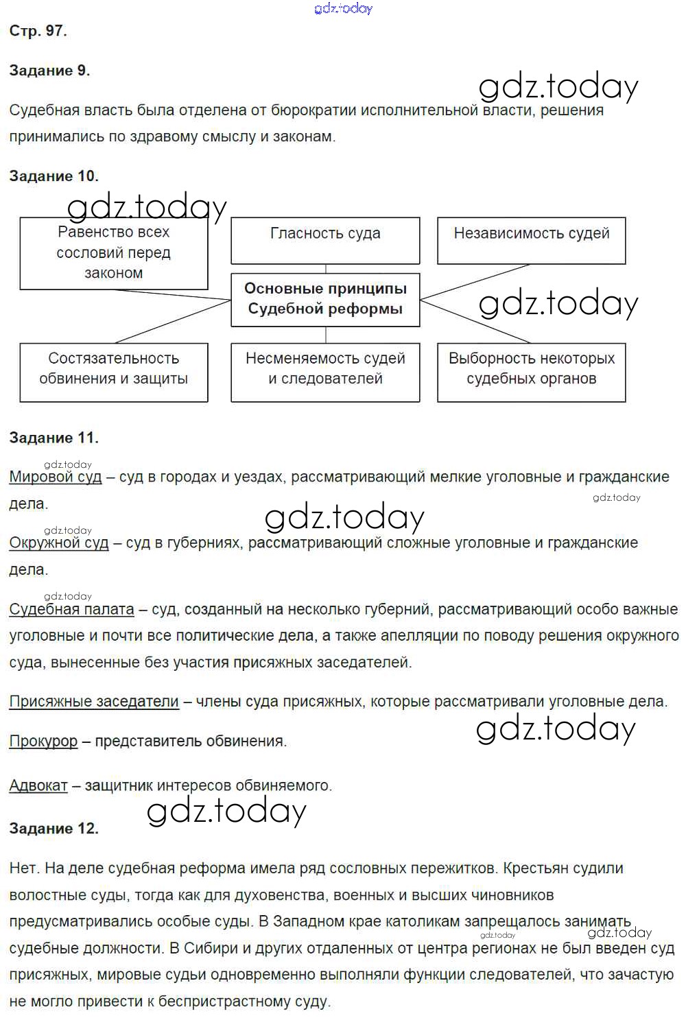 На страницах сайта gdz.today вы найдете учебный и вспомогательный материал, направленный на улучшения знаний школьной программы. ГДЗ - онлайн мир знаний Решение к части 1. Страницы 97 Рабочей тетради по Истории России для 9 класса Чернова Экзамен УМК 2017