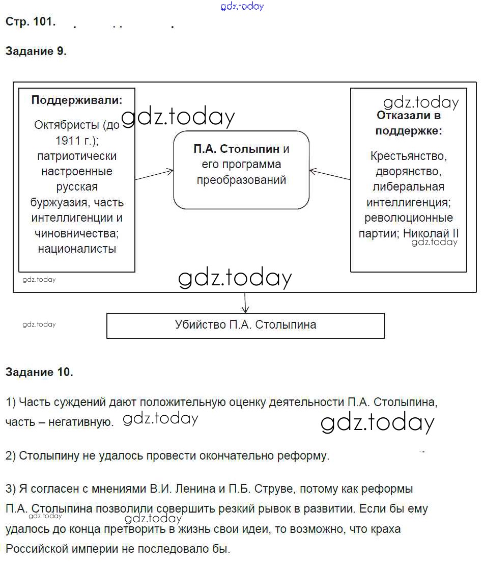На страницах сайта gdz.today вы найдете учебный и вспомогательный материал, направленный на улучшения знаний школьной программы. ГДЗ - онлайн мир знаний Решение к части 2. Страницы 101 Рабочей тетради по Истории России для 9 класса Чернова Экзамен УМК 2017