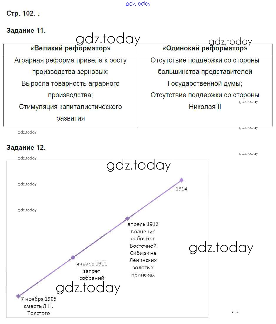 На страницах сайта gdz.today вы найдете учебный и вспомогательный материал, направленный на улучшения знаний школьной программы. ГДЗ - онлайн мир знаний Решение к части 2. Страницы 102 Рабочей тетради по Истории России для 9 класса Чернова Экзамен УМК 2017