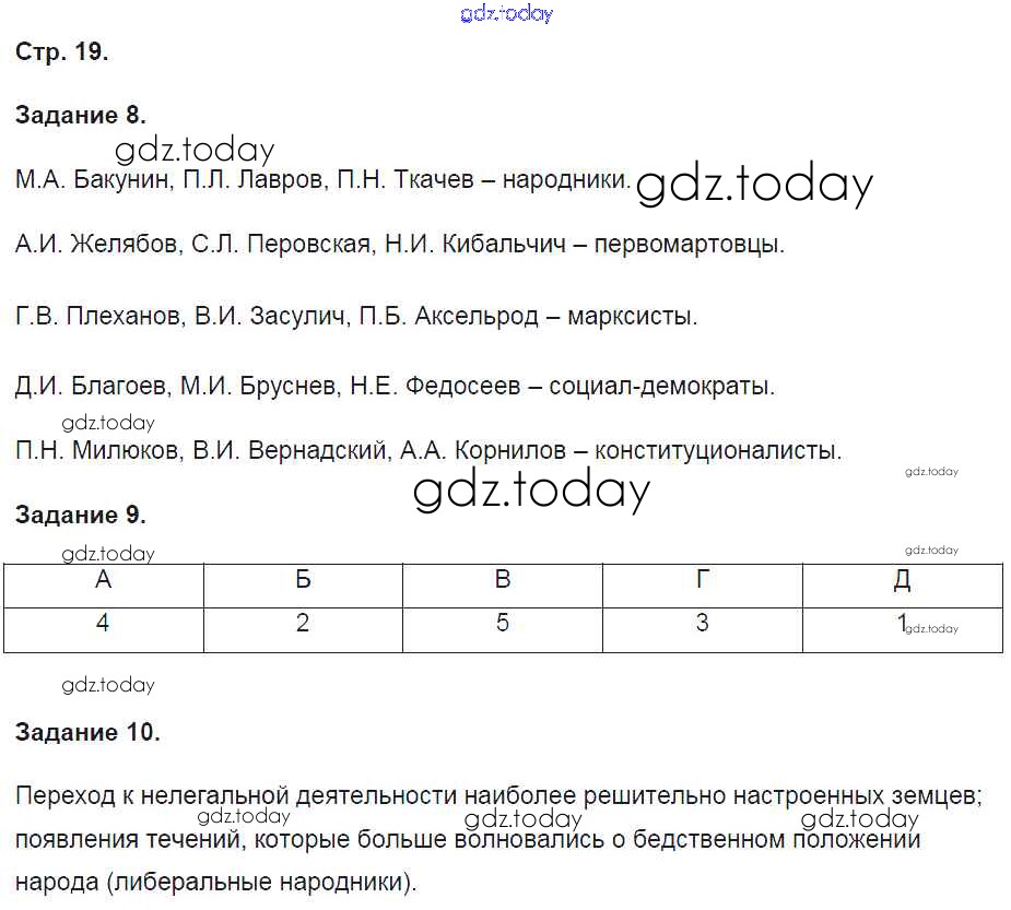 На страницах сайта gdz.today вы найдете учебный и вспомогательный материал, направленный на улучшения знаний школьной программы. ГДЗ - онлайн мир знаний Решение к части 2. Страницы 19 Рабочей тетради по Истории России для 9 класса Чернова Экзамен УМК 2017