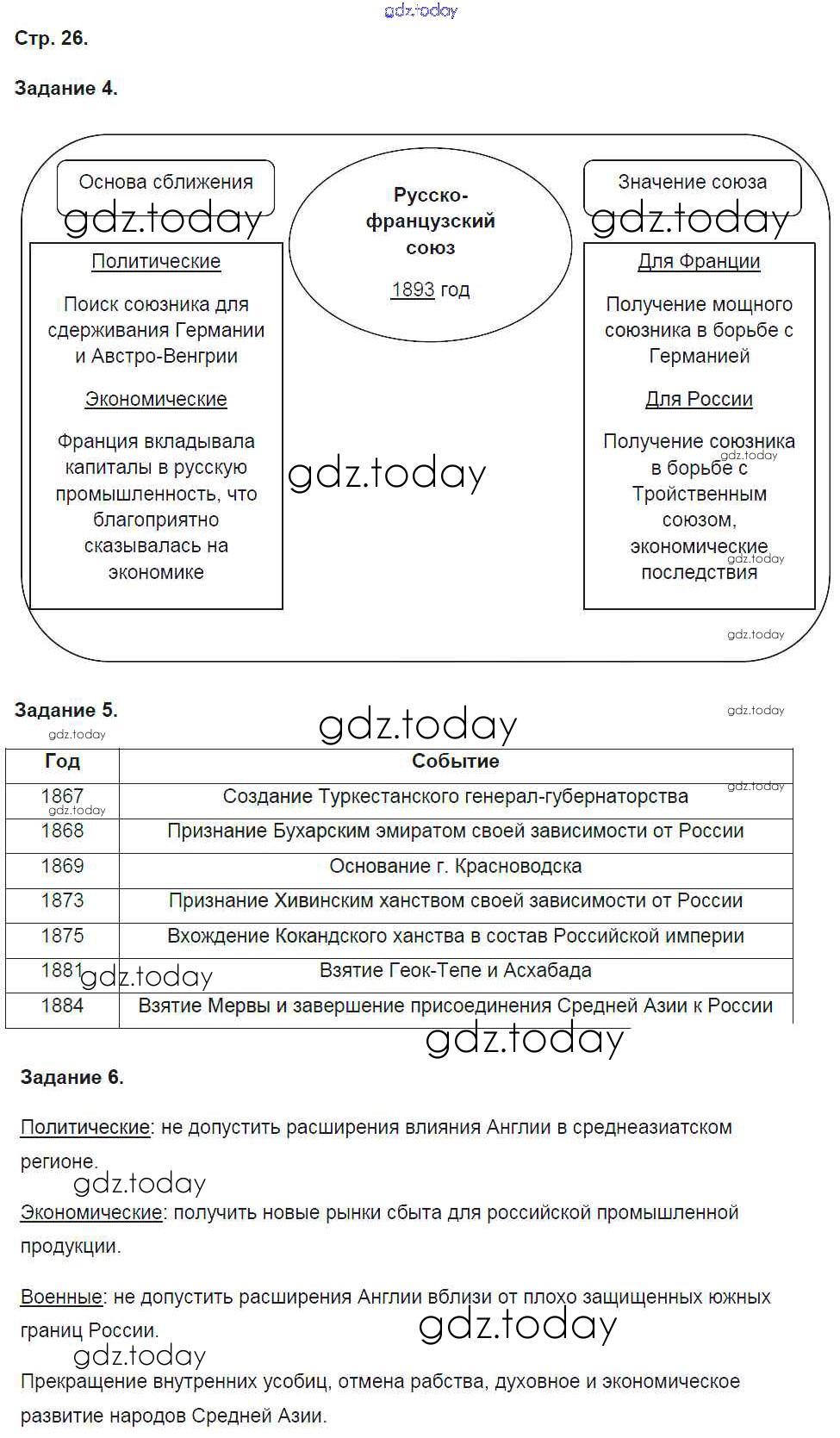 На страницах сайта gdz.today вы найдете учебный и вспомогательный материал, направленный на улучшения знаний школьной программы. ГДЗ - онлайн мир знаний Решение к части 2. Страницы 26 Рабочей тетради по Истории России для 9 класса Чернова Экзамен УМК 2017