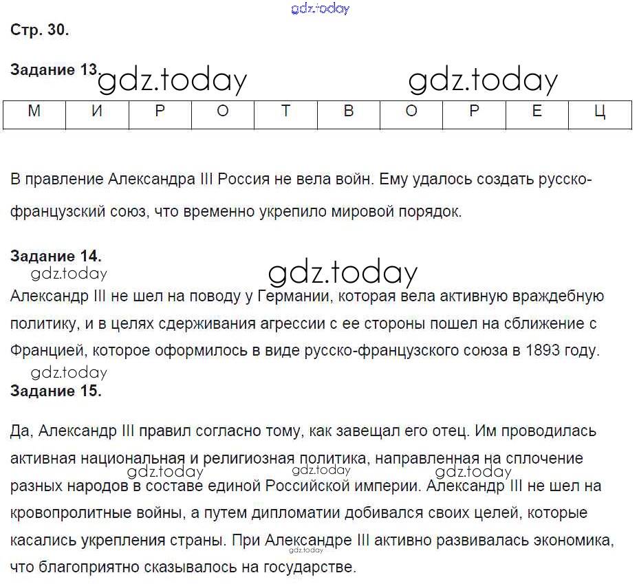 На страницах сайта gdz.today вы найдете учебный и вспомогательный материал, направленный на улучшения знаний школьной программы. ГДЗ - онлайн мир знаний Решение к части 2. Страницы 30 Рабочей тетради по Истории России для 9 класса Чернова Экзамен УМК 2017