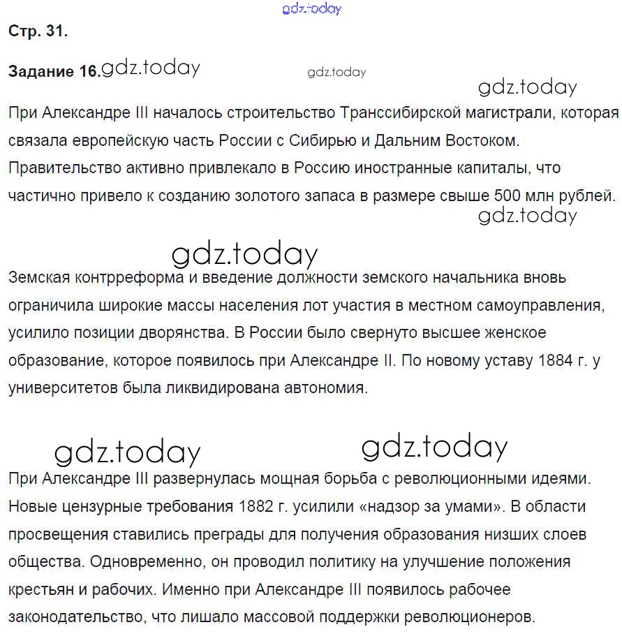 На страницах сайта gdz.today вы найдете учебный и вспомогательный материал, направленный на улучшения знаний школьной программы. ГДЗ - онлайн мир знаний Решение к части 2. Страницы 31 Рабочей тетради по Истории России для 9 класса Чернова Экзамен УМК 2017