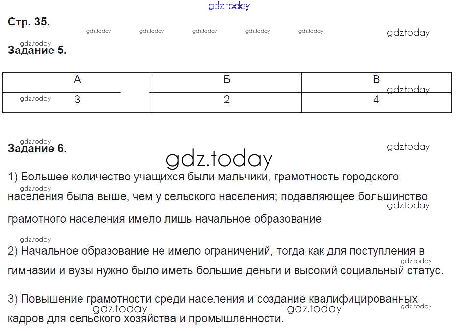 На страницах сайта gdz.today вы найдете учебный и вспомогательный материал, направленный на улучшения знаний школьной программы. ГДЗ - онлайн мир знаний Решение к части 2. Страницы 35 Рабочей тетради по Истории России для 9 класса Чернова Экзамен УМК 2017
