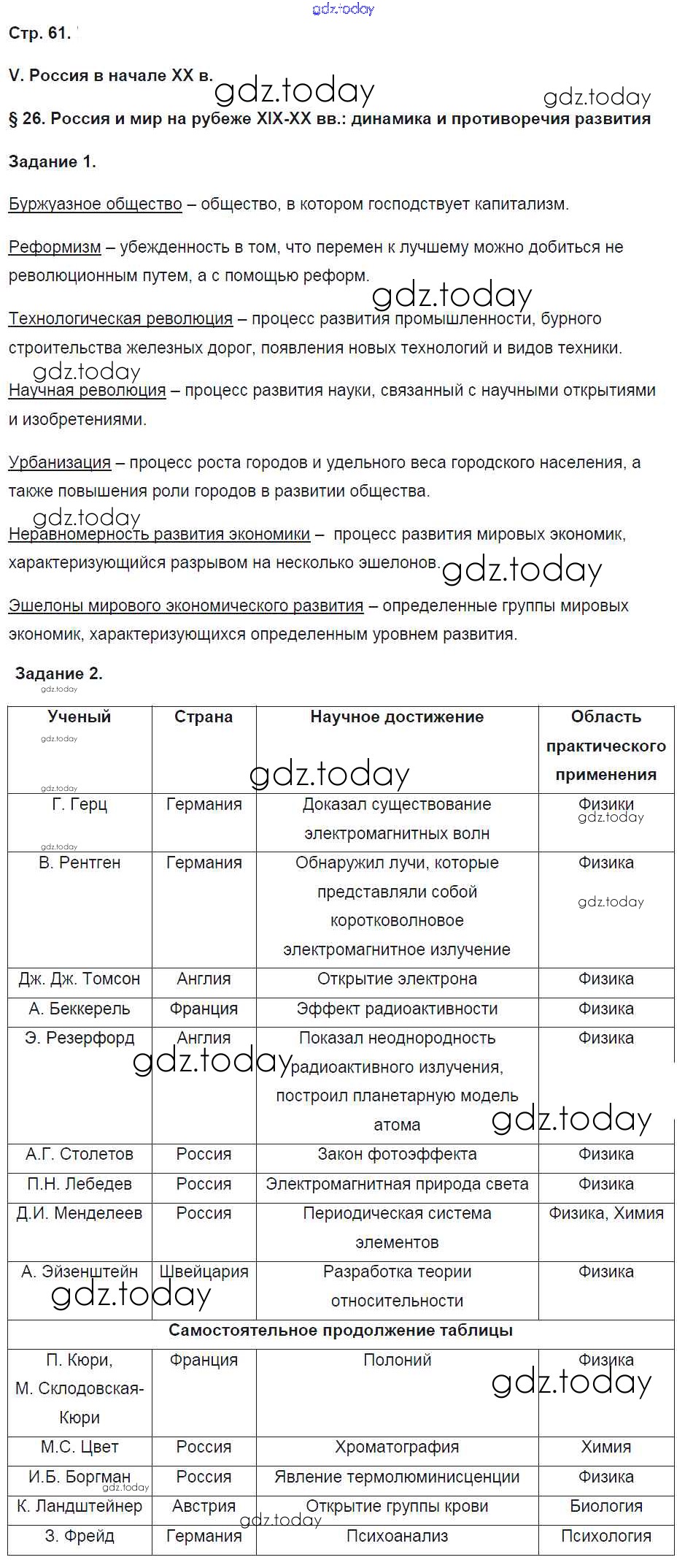 На страницах сайта gdz.today вы найдете учебный и вспомогательный материал, направленный на улучшения знаний школьной программы. ГДЗ - онлайн мир знаний Решение к части 2. Страницы 61 Рабочей тетради по Истории России для 9 класса Чернова Экзамен УМК 2017