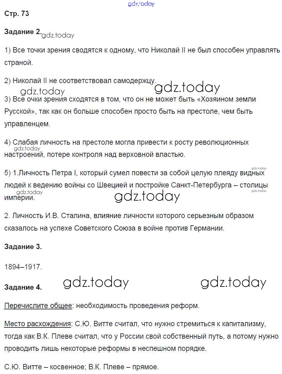 На страницах сайта gdz.today вы найдете учебный и вспомогательный материал, направленный на улучшения знаний школьной программы. ГДЗ - онлайн мир знаний Решение к части 2. Страницы 73 Рабочей тетради по Истории России для 9 класса Чернова Экзамен УМК 2017