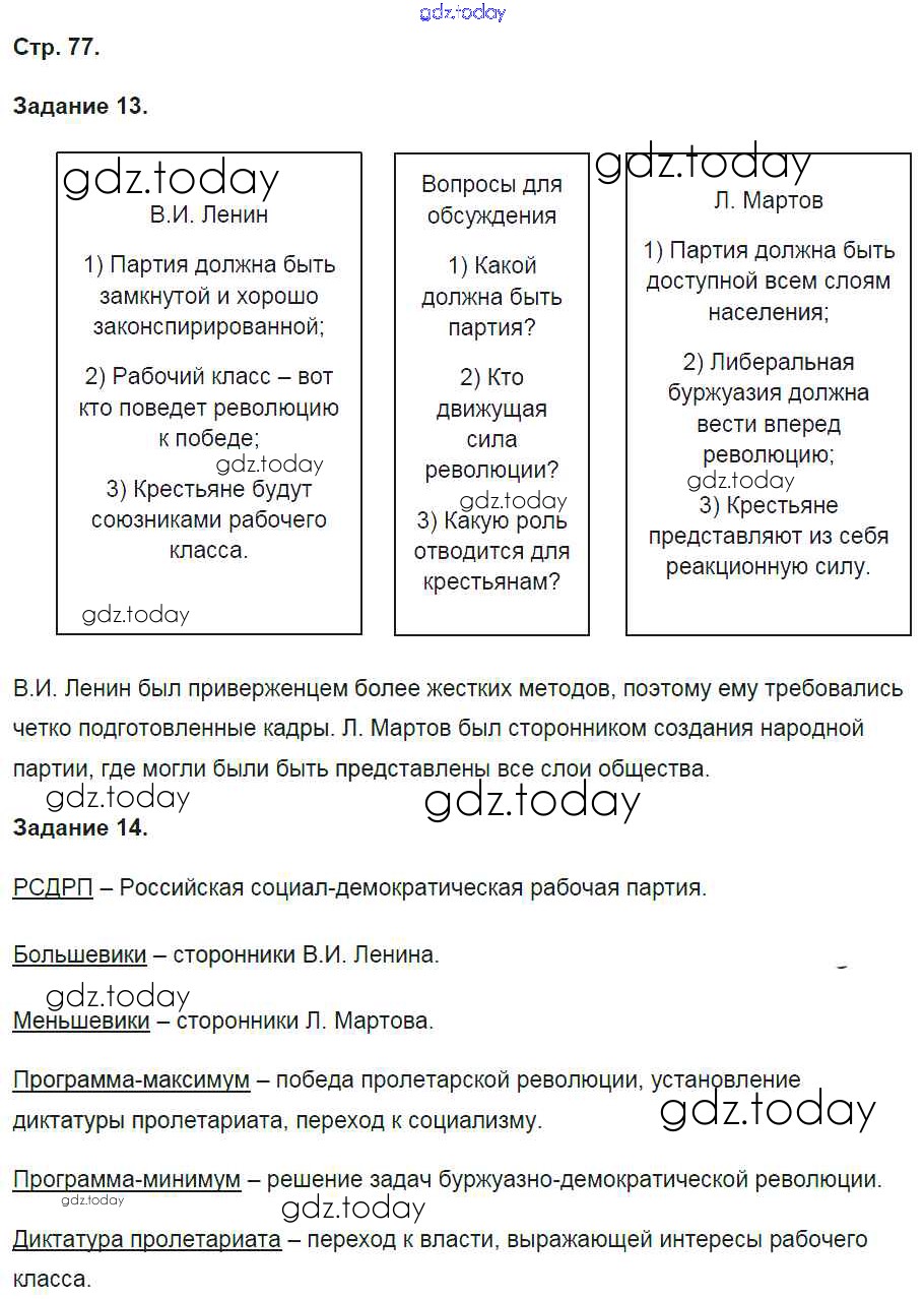 На страницах сайта gdz.today вы найдете учебный и вспомогательный материал, направленный на улучшения знаний школьной программы. ГДЗ - онлайн мир знаний Решение к части 2. Страницы 77 Рабочей тетради по Истории России для 9 класса Чернова Экзамен УМК 2017