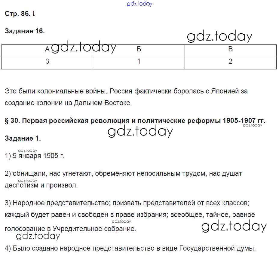 На страницах сайта gdz.today вы найдете учебный и вспомогательный материал, направленный на улучшения знаний школьной программы. ГДЗ - онлайн мир знаний Решение к части 2. Страницы 86 Рабочей тетради по Истории России для 9 класса Чернова Экзамен УМК 2017