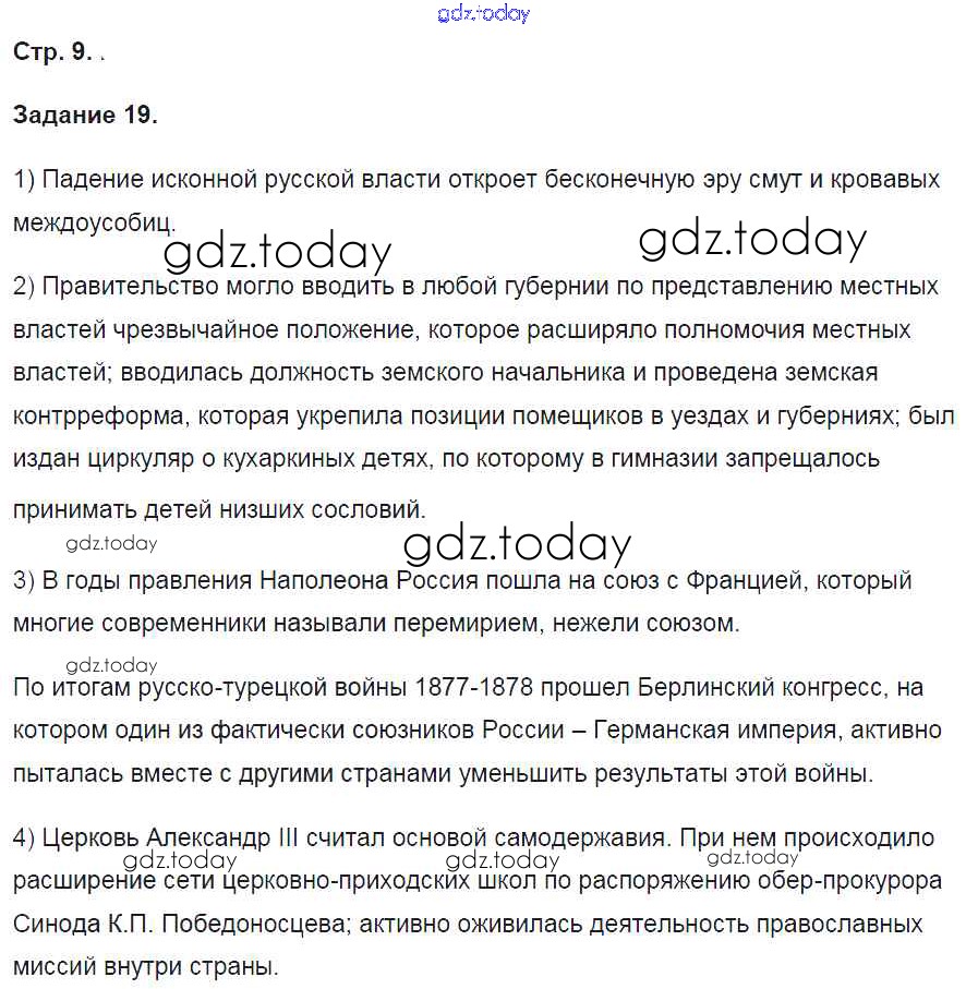 На страницах сайта gdz.today вы найдете учебный и вспомогательный материал, направленный на улучшения знаний школьной программы. ГДЗ - онлайн мир знаний Решение к части 2. Страницы 9 Рабочей тетради по Истории России для 9 класса Чернова Экзамен УМК 2017