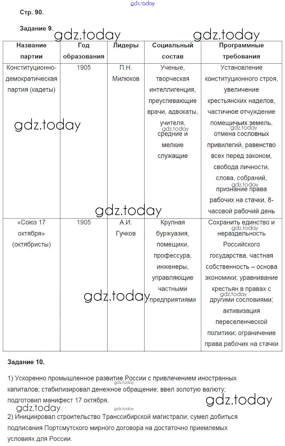 На страницах сайта gdz.today вы найдете учебный и вспомогательный материал, направленный на улучшения знаний школьной программы. ГДЗ - онлайн мир знаний Решение к части 2. Страницы 90 Рабочей тетради по Истории России для 9 класса Чернова Экзамен УМК 2017
