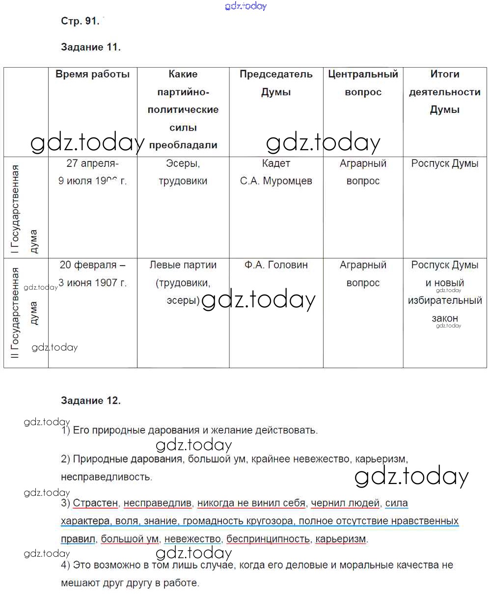 На страницах сайта gdz.today вы найдете учебный и вспомогательный материал, направленный на улучшения знаний школьной программы. ГДЗ - онлайн мир знаний Решение к части 2. Страницы 91 Рабочей тетради по Истории России для 9 класса Чернова Экзамен УМК 2017