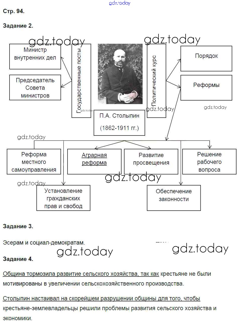На страницах сайта gdz.today вы найдете учебный и вспомогательный материал, направленный на улучшения знаний школьной программы. ГДЗ - онлайн мир знаний Решение к части 2. Страницы 94 Рабочей тетради по Истории России для 9 класса Чернова Экзамен УМК 2017