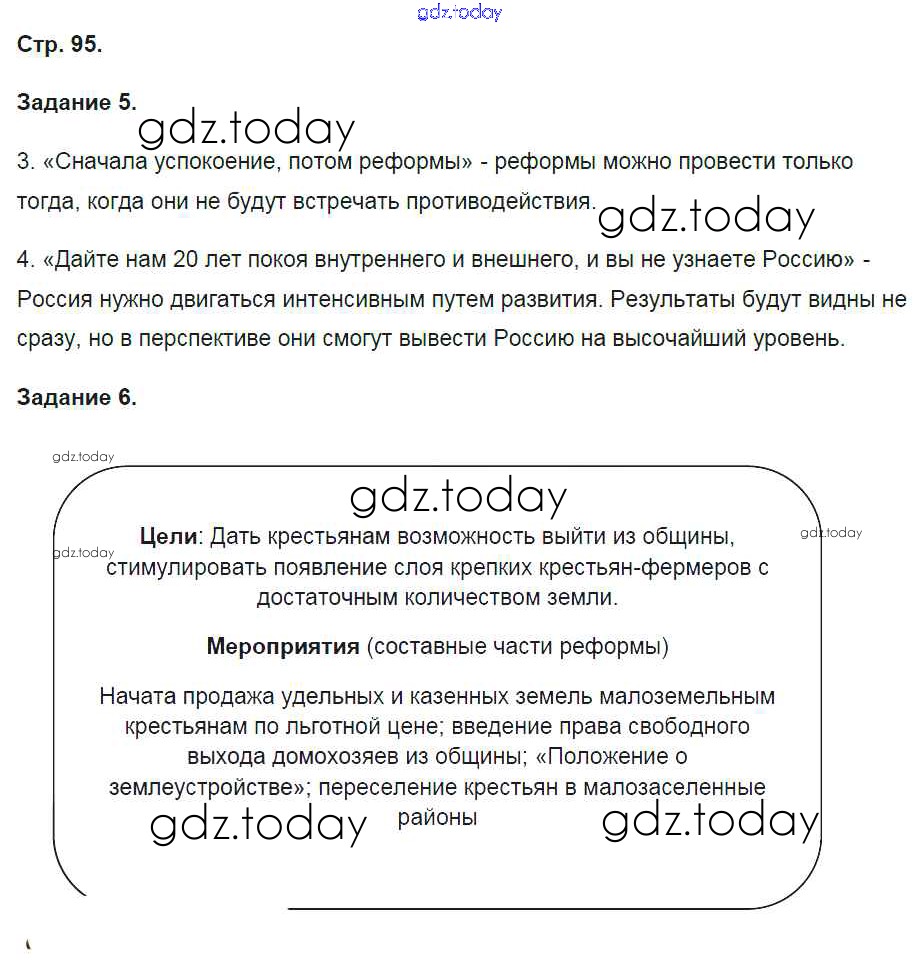 На страницах сайта gdz.today вы найдете учебный и вспомогательный материал, направленный на улучшения знаний школьной программы. ГДЗ - онлайн мир знаний Решение к части 2. Страницы 95 Рабочей тетради по Истории России для 9 класса Чернова Экзамен УМК 2017