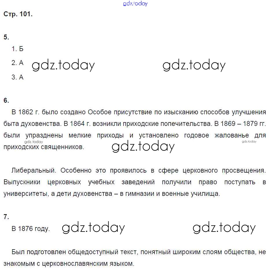 На страницах сайта gdz.today вы найдете учебный и вспомогательный материал, направленный на улучшения знаний школьной программы. ГДЗ - онлайн мир знаний Решение к части 1. Страницы 101 Рабочей тетради по Истории России для 9 класса Данилов, Косулина Просвещение УМК 2017