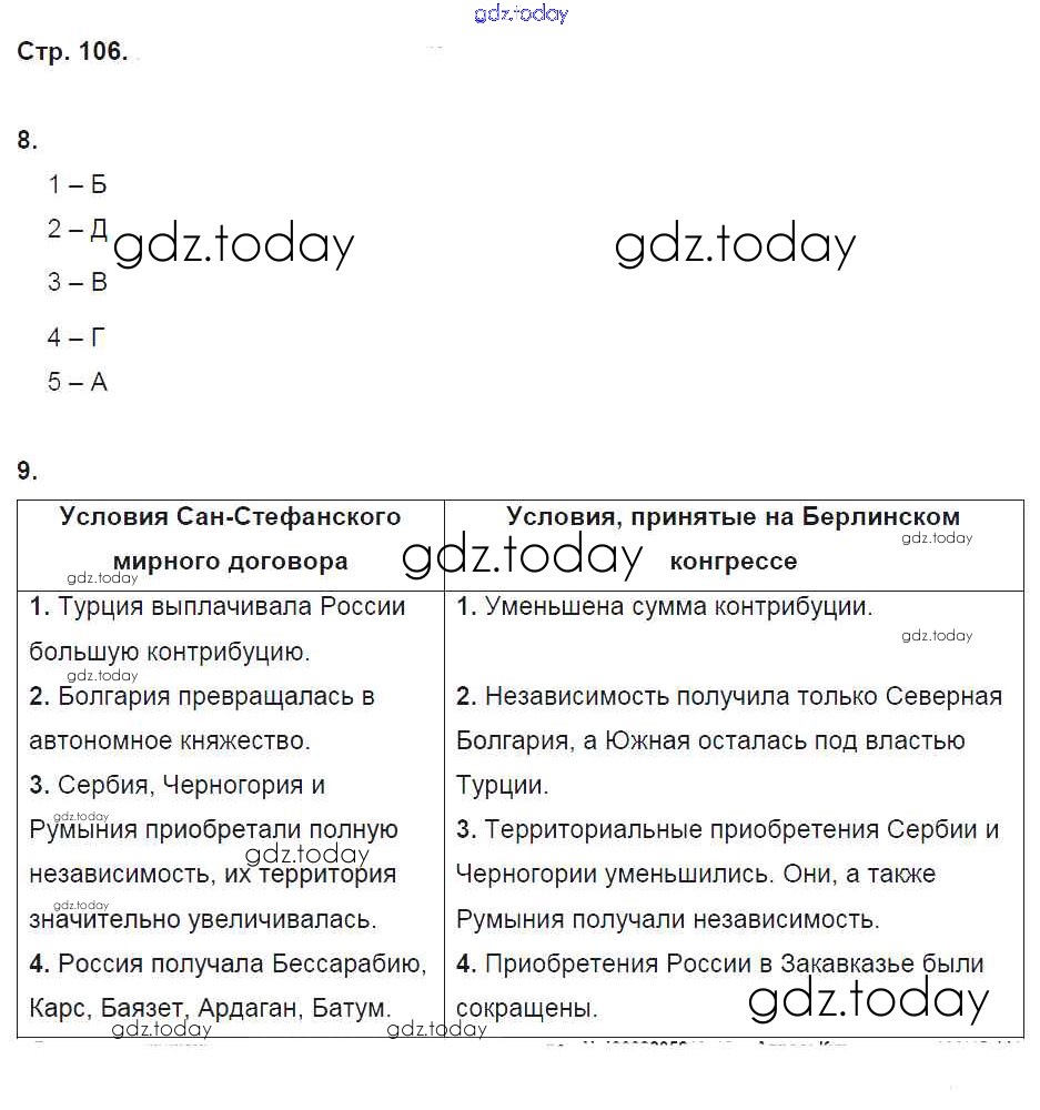 На страницах сайта gdz.today вы найдете учебный и вспомогательный материал, направленный на улучшения знаний школьной программы. ГДЗ - онлайн мир знаний Решение к части 1. Страницы 106 Рабочей тетради по Истории России для 9 класса Данилов, Косулина Просвещение УМК 2017
