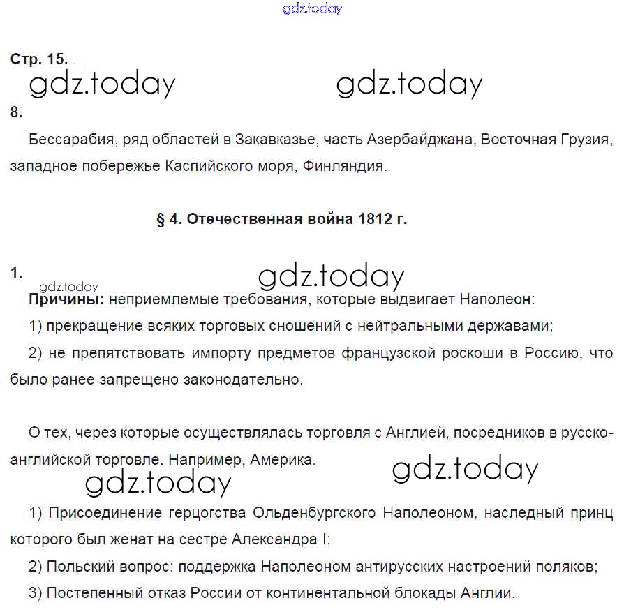 На страницах сайта gdz.today вы найдете учебный и вспомогательный материал, направленный на улучшения знаний школьной программы. ГДЗ - онлайн мир знаний Решение к части 1. Страницы 15 Рабочей тетради по Истории России для 9 класса Данилов, Косулина Просвещение УМК 2017