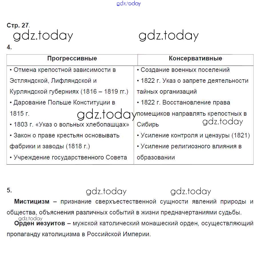 На страницах сайта gdz.today вы найдете учебный и вспомогательный материал, направленный на улучшения знаний школьной программы. ГДЗ - онлайн мир знаний Решение к части 1. Страницы 27 Рабочей тетради по Истории России для 9 класса Данилов, Косулина Просвещение УМК 2017