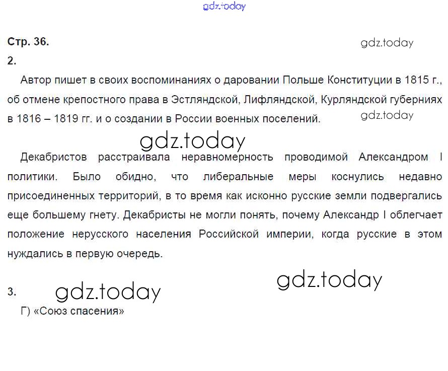 На страницах сайта gdz.today вы найдете учебный и вспомогательный материал, направленный на улучшения знаний школьной программы. ГДЗ - онлайн мир знаний Решение к части 1. Страницы 36 Рабочей тетради по Истории России для 9 класса Данилов, Косулина Просвещение УМК 2017