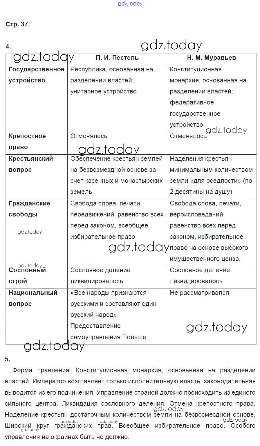 На страницах сайта gdz.today вы найдете учебный и вспомогательный материал, направленный на улучшения знаний школьной программы. ГДЗ - онлайн мир знаний Решение к части 1. Страницы 37 Рабочей тетради по Истории России для 9 класса Данилов, Косулина Просвещение УМК 2017