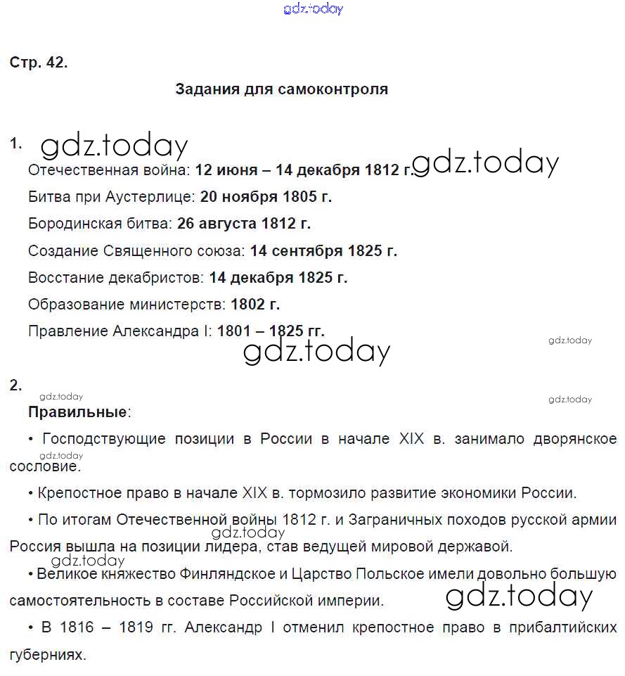 На страницах сайта gdz.today вы найдете учебный и вспомогательный материал, направленный на улучшения знаний школьной программы. ГДЗ - онлайн мир знаний Решение к части 1. Страницы 42 Рабочей тетради по Истории России для 9 класса Данилов, Косулина Просвещение УМК 2017