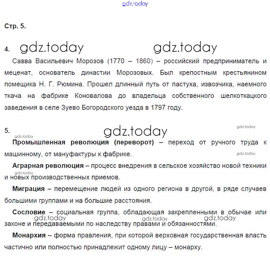 На страницах сайта gdz.today вы найдете учебный и вспомогательный материал, направленный на улучшения знаний школьной программы. ГДЗ - онлайн мир знаний Решение к части 1. Страницы 5 Рабочей тетради по Истории России для 9 класса Данилов, Косулина Просвещение УМК 2017