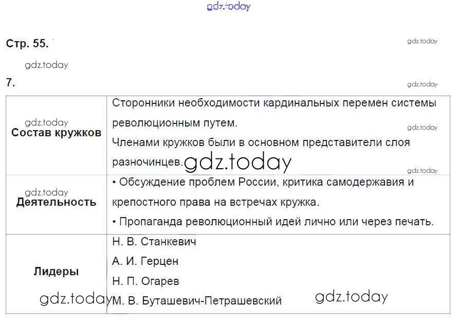 На страницах сайта gdz.today вы найдете учебный и вспомогательный материал, направленный на улучшения знаний школьной программы. ГДЗ - онлайн мир знаний Решение к части 1. Страницы 55 Рабочей тетради по Истории России для 9 класса Данилов, Косулина Просвещение УМК 2017