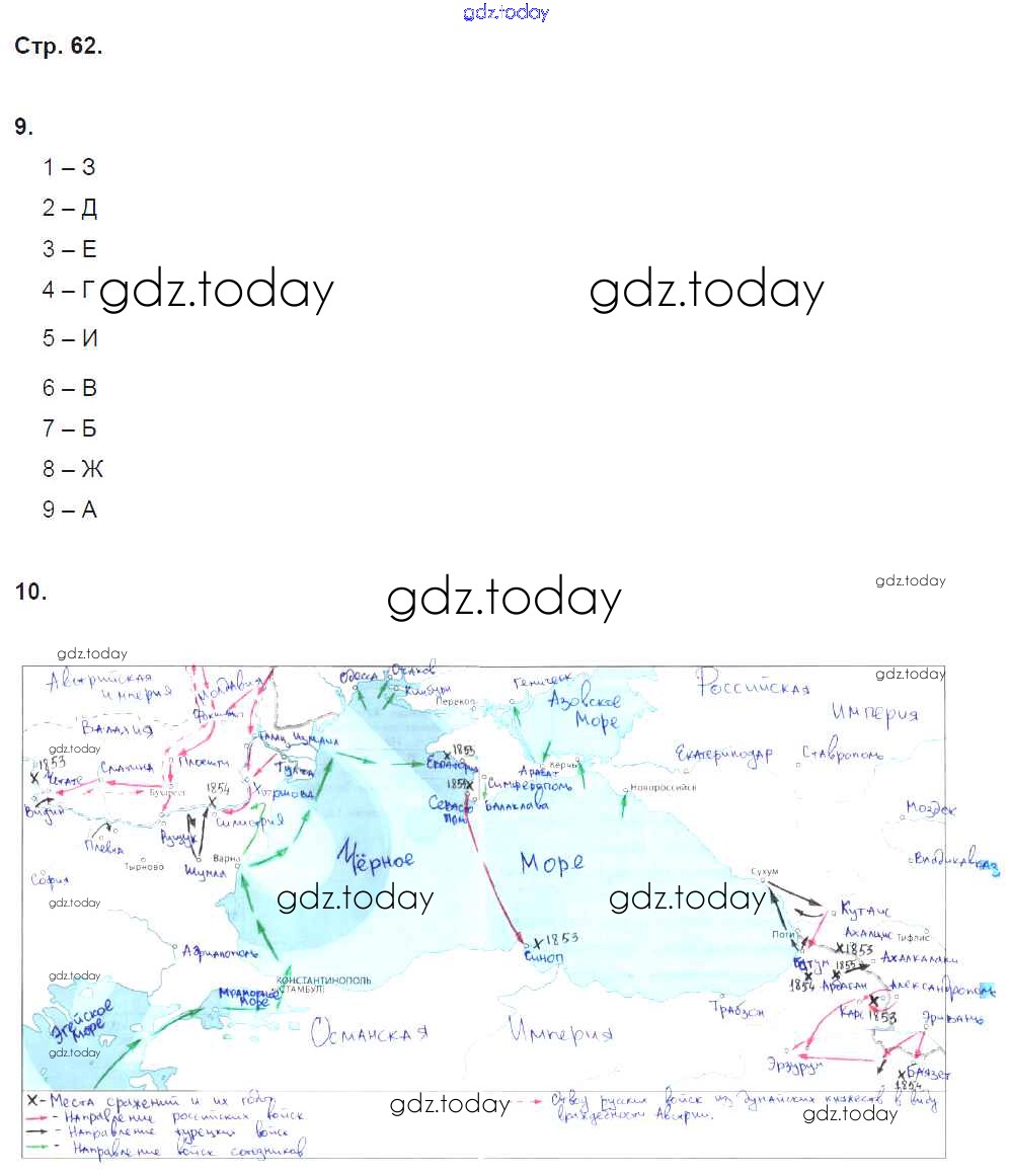 На страницах сайта gdz.today вы найдете учебный и вспомогательный материал, направленный на улучшения знаний школьной программы. ГДЗ - онлайн мир знаний Решение к части 1. Страницы 62 Рабочей тетради по Истории России для 9 класса Данилов, Косулина Просвещение УМК 2017