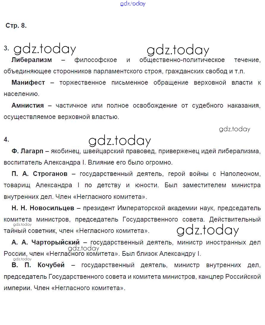 На страницах сайта gdz.today вы найдете учебный и вспомогательный материал, направленный на улучшения знаний школьной программы. ГДЗ - онлайн мир знаний Решение к части 1. Страницы 8 Рабочей тетради по Истории России для 9 класса Данилов, Косулина Просвещение УМК 2017
