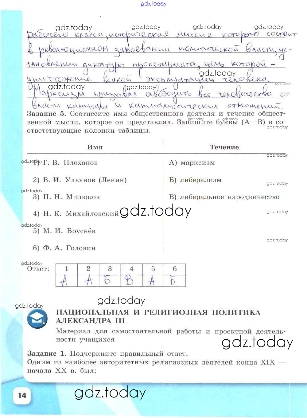 На страницах сайта gdz.today вы найдете учебный и вспомогательный материал, направленный на улучшения знаний школьной программы. ГДЗ - онлайн мир знаний Решение к части 2. Страницы 14 Рабочей тетради по Истории России для 9 класса Данилов, Косулина Просвещение УМК 2017