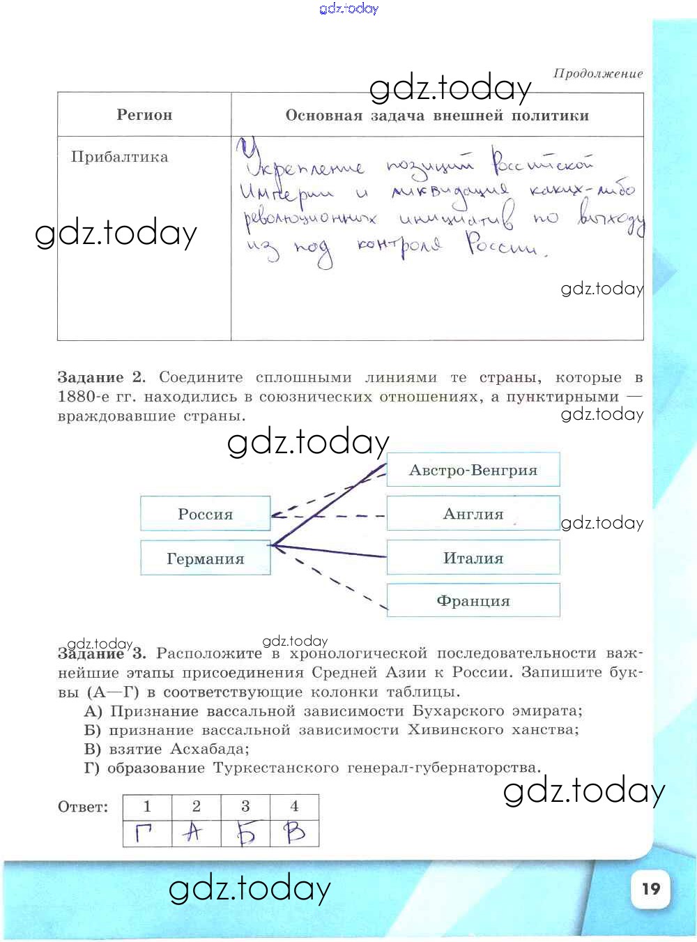 На страницах сайта gdz.today вы найдете учебный и вспомогательный материал, направленный на улучшения знаний школьной программы. ГДЗ - онлайн мир знаний Решение к части 2. Страницы 19 Рабочей тетради по Истории России для 9 класса Данилов, Косулина Просвещение УМК 2017