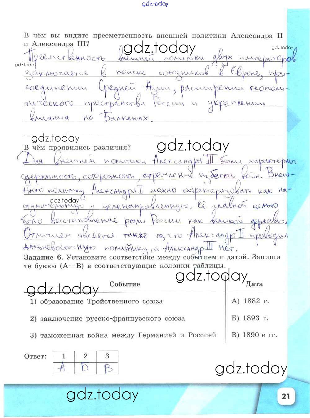 На страницах сайта gdz.today вы найдете учебный и вспомогательный материал, направленный на улучшения знаний школьной программы. ГДЗ - онлайн мир знаний Решение к части 2. Страницы 21 Рабочей тетради по Истории России для 9 класса Данилов, Косулина Просвещение УМК 2017