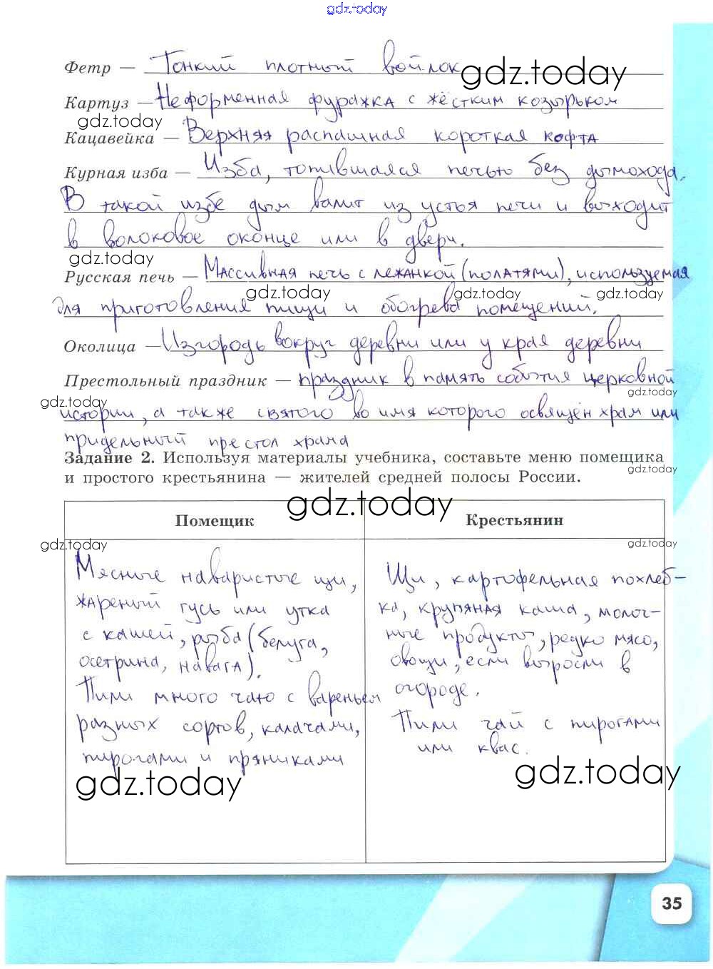 На страницах сайта gdz.today вы найдете учебный и вспомогательный материал, направленный на улучшения знаний школьной программы. ГДЗ - онлайн мир знаний Решение к части 2. Страницы 35 Рабочей тетради по Истории России для 9 класса Данилов, Косулина Просвещение УМК 2017