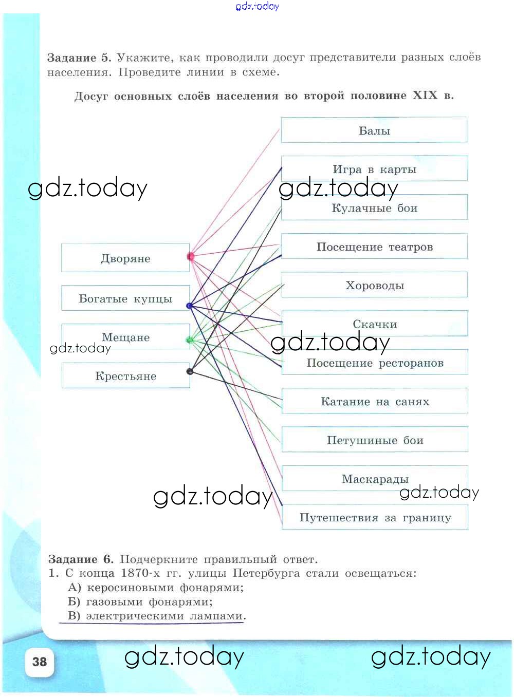 На страницах сайта gdz.today вы найдете учебный и вспомогательный материал, направленный на улучшения знаний школьной программы. ГДЗ - онлайн мир знаний Решение к части 2. Страницы 38 Рабочей тетради по Истории России для 9 класса Данилов, Косулина Просвещение УМК 2017