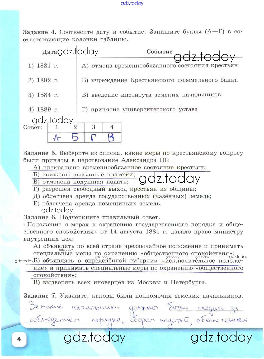На страницах сайта gdz.today вы найдете учебный и вспомогательный материал, направленный на улучшения знаний школьной программы. ГДЗ - онлайн мир знаний Решение к части 2. Страницы 4 Рабочей тетради по Истории России для 9 класса Данилов, Косулина Просвещение УМК 2017