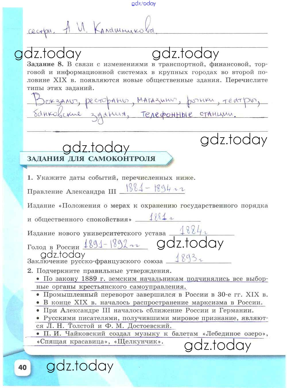 На страницах сайта gdz.today вы найдете учебный и вспомогательный материал, направленный на улучшения знаний школьной программы. ГДЗ - онлайн мир знаний Решение к части 2. Страницы 40 Рабочей тетради по Истории России для 9 класса Данилов, Косулина Просвещение УМК 2017