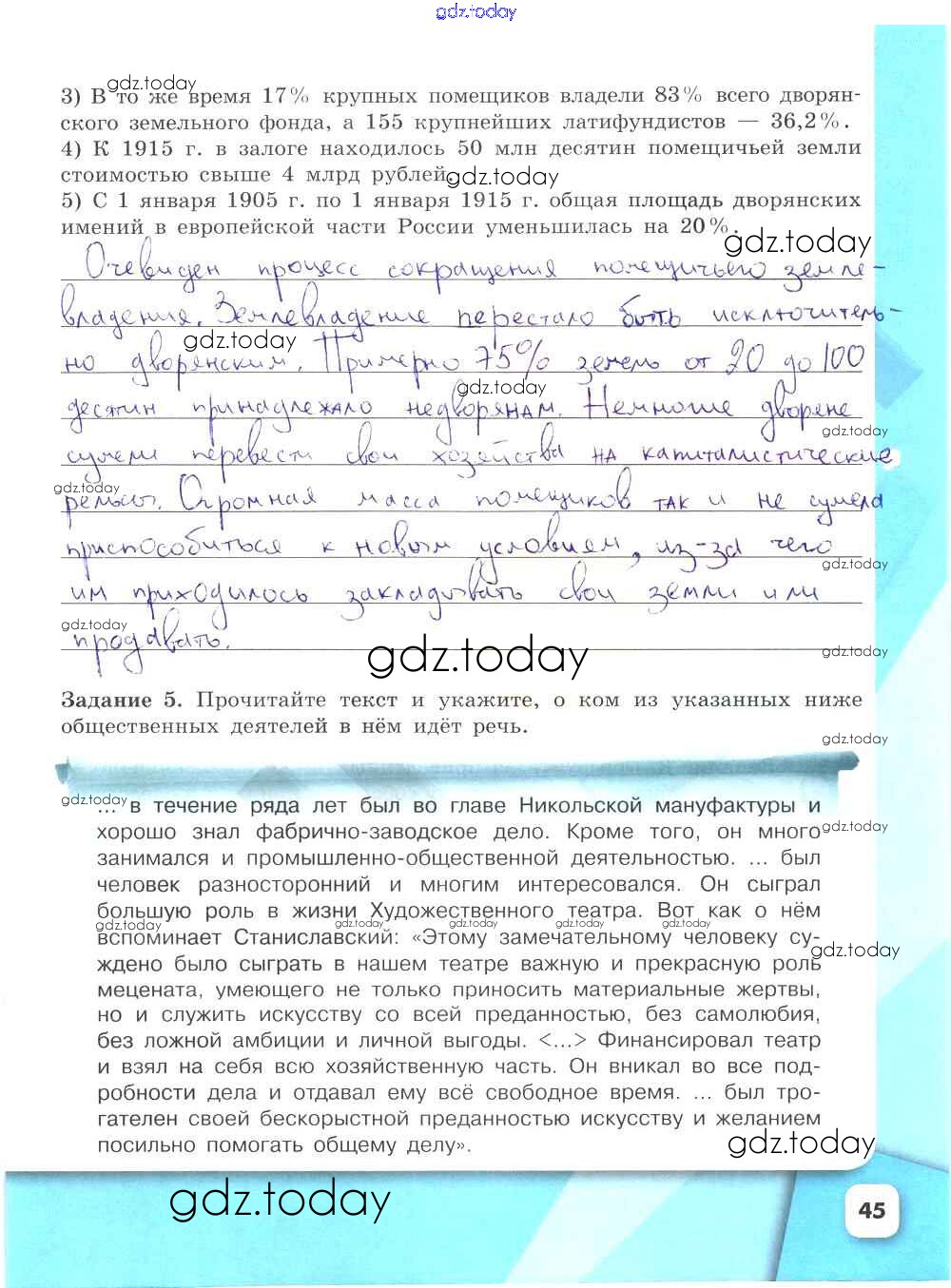 На страницах сайта gdz.today вы найдете учебный и вспомогательный материал, направленный на улучшения знаний школьной программы. ГДЗ - онлайн мир знаний Решение к части 2. Страницы 45 Рабочей тетради по Истории России для 9 класса Данилов, Косулина Просвещение УМК 2017