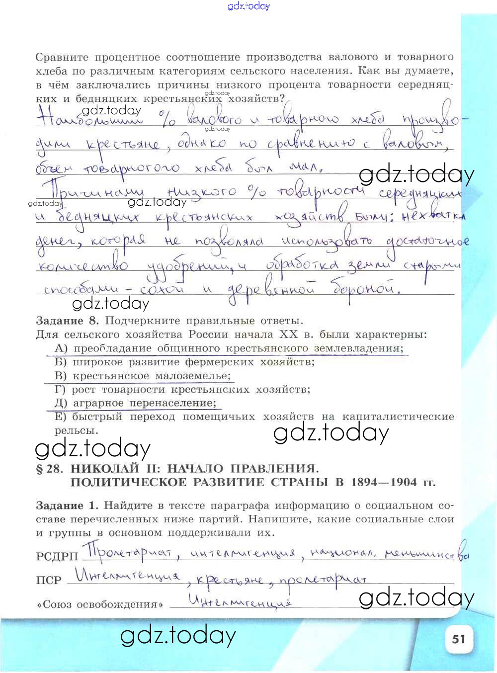 На страницах сайта gdz.today вы найдете учебный и вспомогательный материал, направленный на улучшения знаний школьной программы. ГДЗ - онлайн мир знаний Решение к части 2. Страницы 51 Рабочей тетради по Истории России для 9 класса Данилов, Косулина Просвещение УМК 2017
