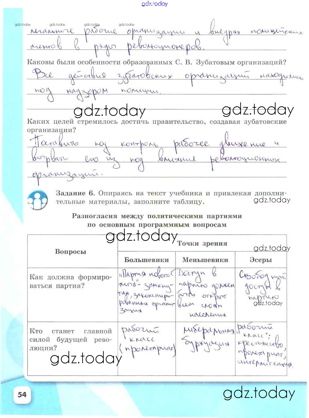 На страницах сайта gdz.today вы найдете учебный и вспомогательный материал, направленный на улучшения знаний школьной программы. ГДЗ - онлайн мир знаний Решение к части 2. Страницы 54 Рабочей тетради по Истории России для 9 класса Данилов, Косулина Просвещение УМК 2017