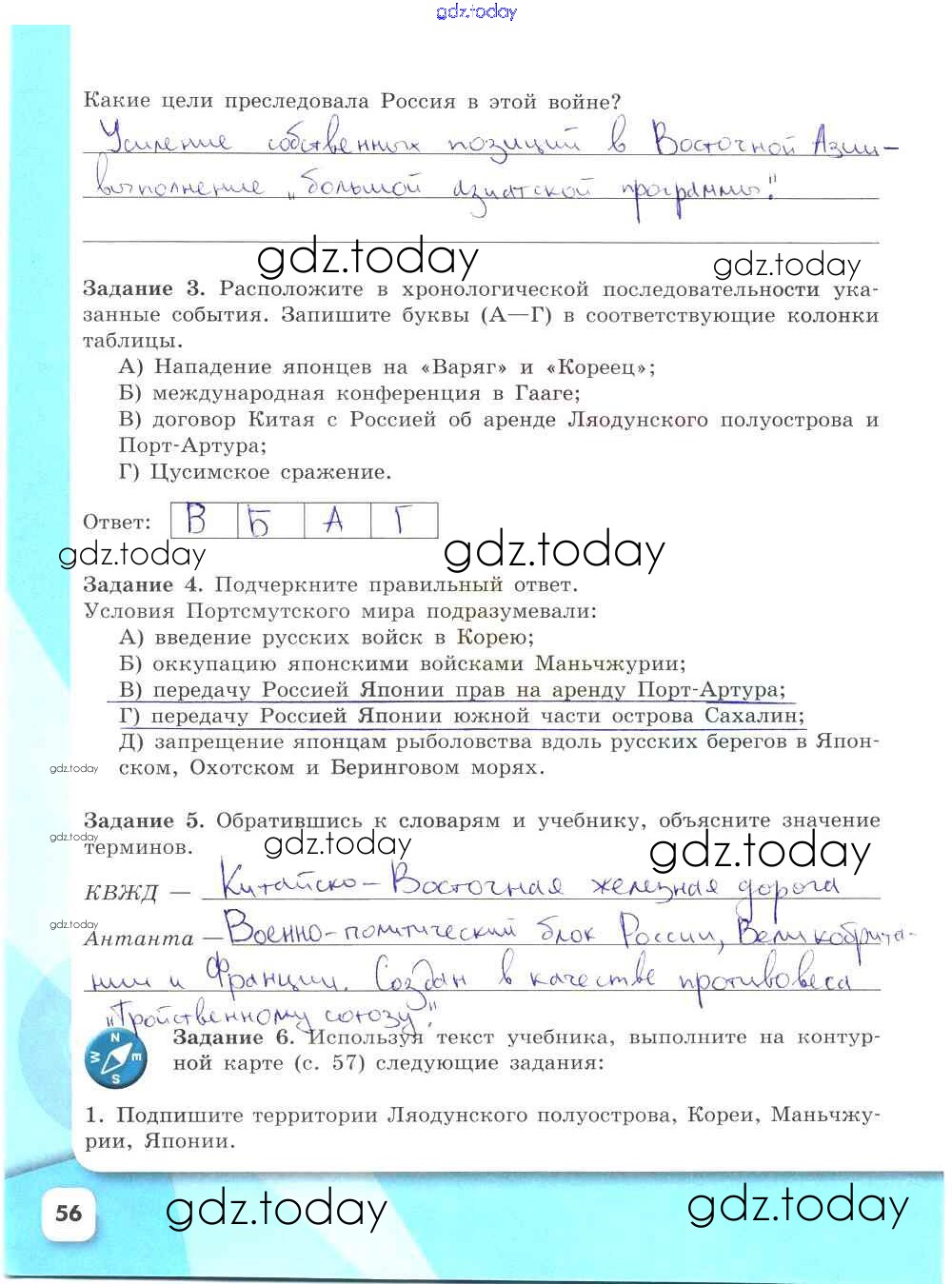 На страницах сайта gdz.today вы найдете учебный и вспомогательный материал, направленный на улучшения знаний школьной программы. ГДЗ - онлайн мир знаний Решение к части 2. Страницы 56 Рабочей тетради по Истории России для 9 класса Данилов, Косулина Просвещение УМК 2017