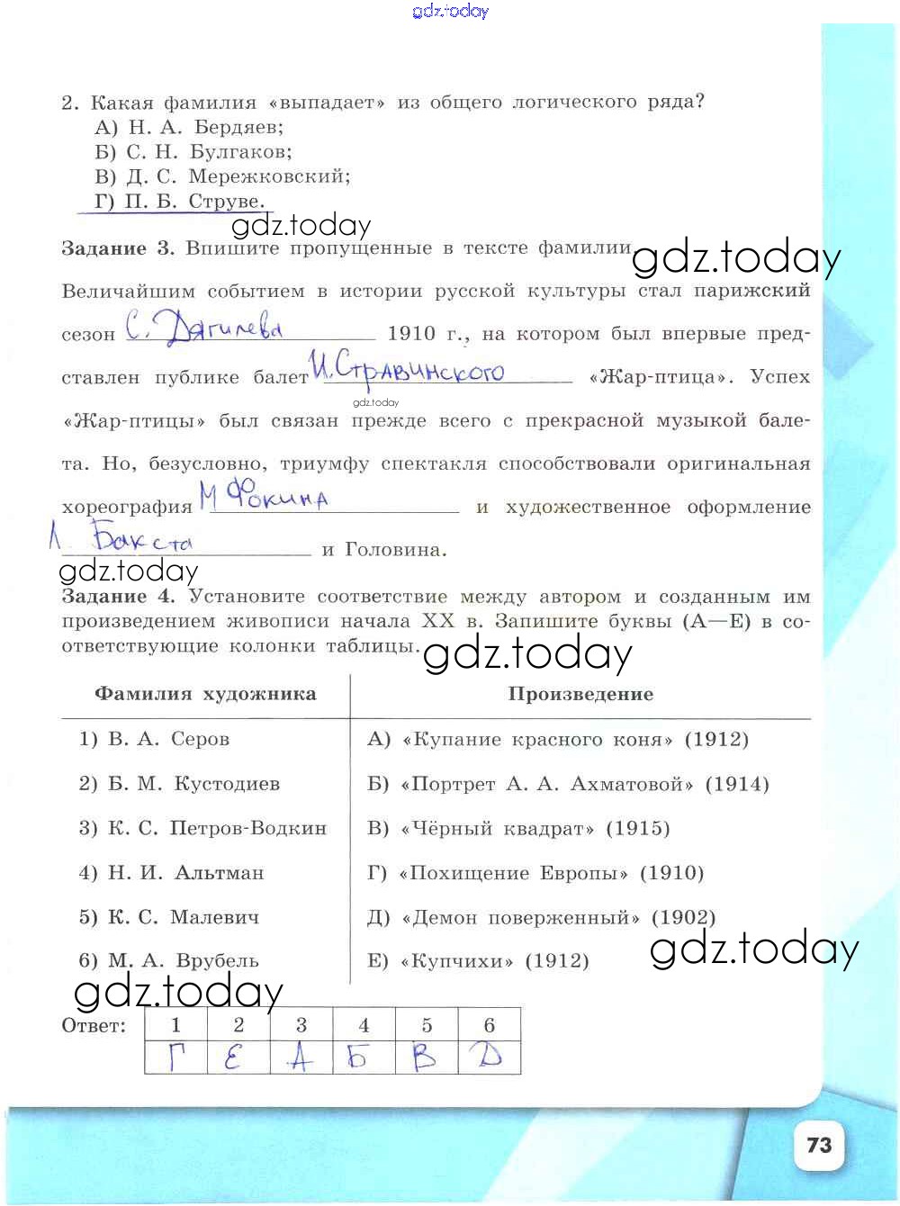 На страницах сайта gdz.today вы найдете учебный и вспомогательный материал, направленный на улучшения знаний школьной программы. ГДЗ - онлайн мир знаний Решение к части 2. Страницы 73 Рабочей тетради по Истории России для 9 класса Данилов, Косулина Просвещение УМК 2017