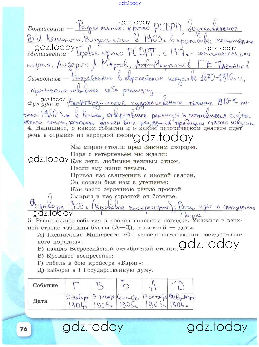 На страницах сайта gdz.today вы найдете учебный и вспомогательный материал, направленный на улучшения знаний школьной программы. ГДЗ - онлайн мир знаний Решение к части 2. Страницы 76 Рабочей тетради по Истории России для 9 класса Данилов, Косулина Просвещение УМК 2017