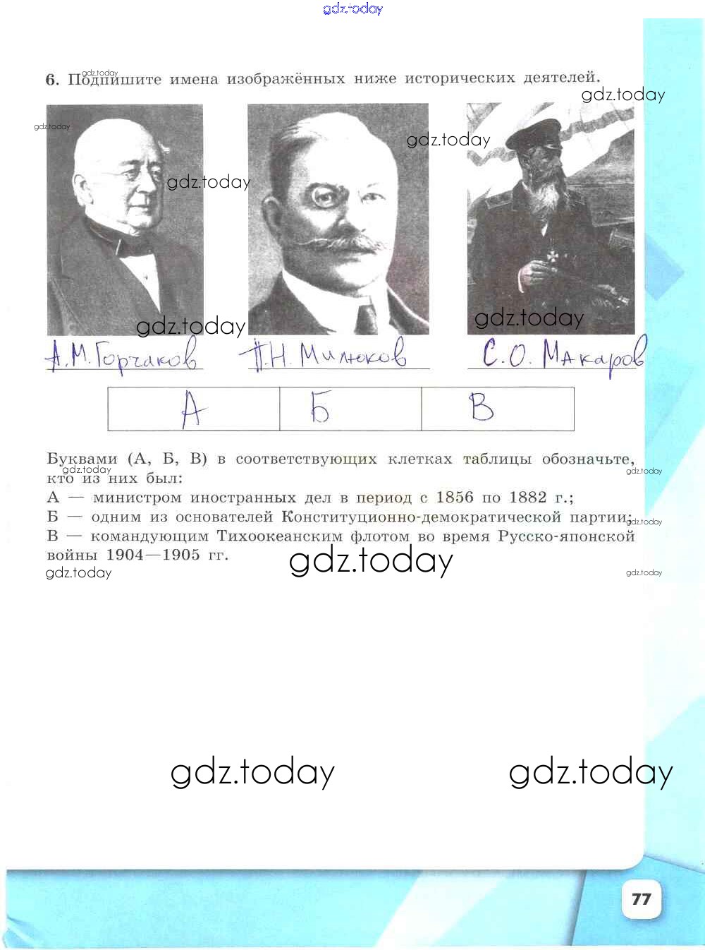 На страницах сайта gdz.today вы найдете учебный и вспомогательный материал, направленный на улучшения знаний школьной программы. ГДЗ - онлайн мир знаний Решение к части 2. Страницы 77 Рабочей тетради по Истории России для 9 класса Данилов, Косулина Просвещение УМК 2017