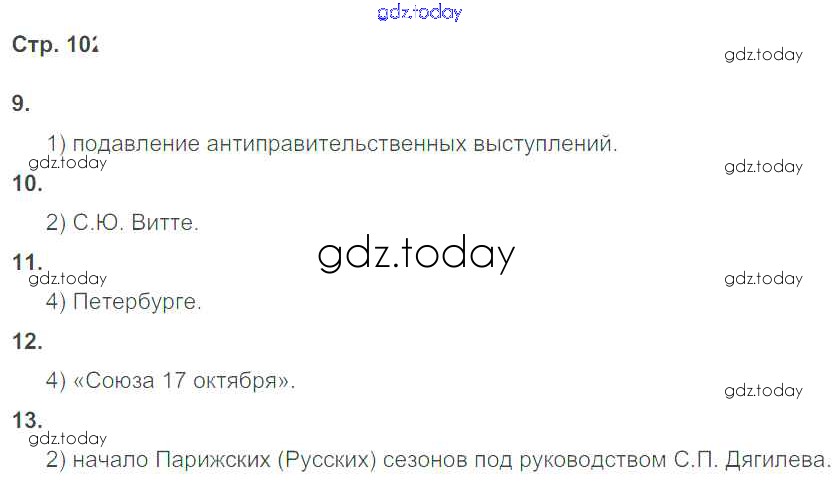 На страницах сайта gdz.today вы найдете учебный и вспомогательный материал, направленный на улучшения знаний школьной программы. ГДЗ - онлайн мир знаний Страницы (решение) 102 Рабочей тетради по Истории России для 9 класса Гевуркова Экзамен УМК 2019