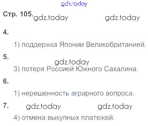 На страницах сайта gdz.today вы найдете учебный и вспомогательный материал, направленный на улучшения знаний школьной программы. ГДЗ - онлайн мир знаний Страницы (решение) 105 Рабочей тетради по Истории России для 9 класса Гевуркова Экзамен УМК 2019