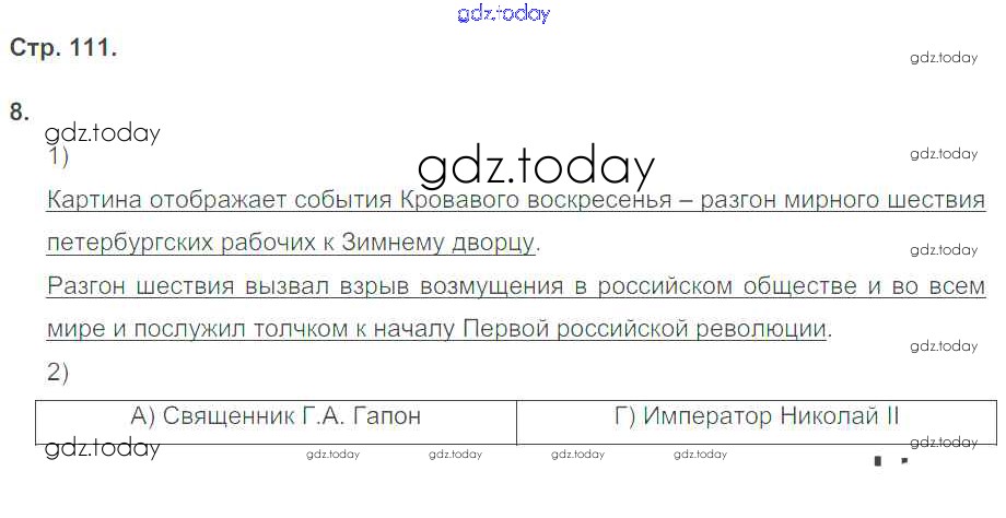 На страницах сайта gdz.today вы найдете учебный и вспомогательный материал, направленный на улучшения знаний школьной программы. ГДЗ - онлайн мир знаний Страницы (решение) 111 Рабочей тетради по Истории России для 9 класса Гевуркова Экзамен УМК 2019