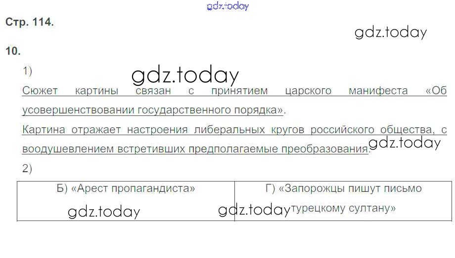 На страницах сайта gdz.today вы найдете учебный и вспомогательный материал, направленный на улучшения знаний школьной программы. ГДЗ - онлайн мир знаний Страницы (решение) 114 Рабочей тетради по Истории России для 9 класса Гевуркова Экзамен УМК 2019