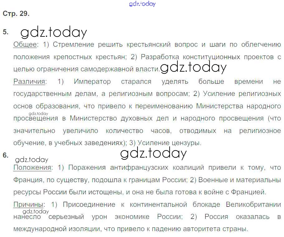 На страницах сайта gdz.today вы найдете учебный и вспомогательный материал, направленный на улучшения знаний школьной программы. ГДЗ - онлайн мир знаний Страницы (решение) 29 Рабочей тетради по Истории России для 9 класса Гевуркова Экзамен УМК 2019