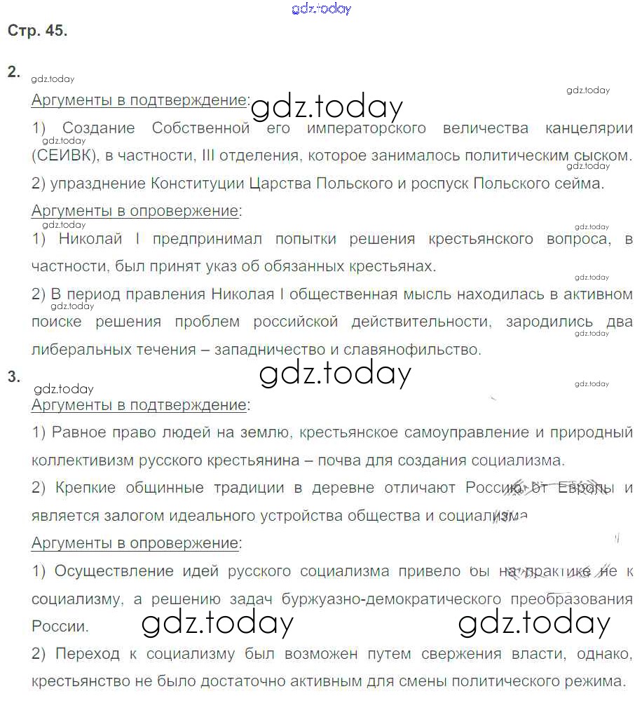 На страницах сайта gdz.today вы найдете учебный и вспомогательный материал, направленный на улучшения знаний школьной программы. ГДЗ - онлайн мир знаний Страницы (решение) 45 Рабочей тетради по Истории России для 9 класса Гевуркова Экзамен УМК 2019