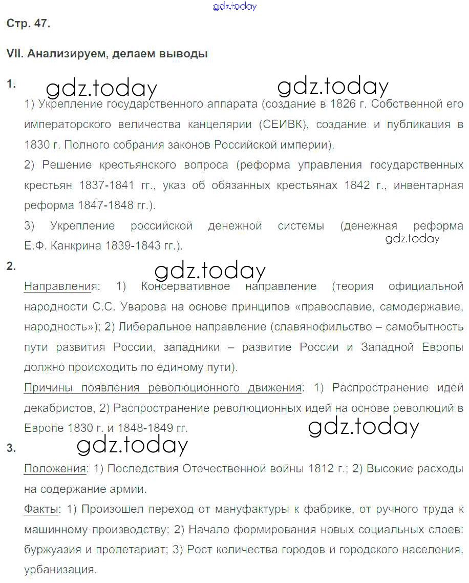 На страницах сайта gdz.today вы найдете учебный и вспомогательный материал, направленный на улучшения знаний школьной программы. ГДЗ - онлайн мир знаний Страницы (решение) 47 Рабочей тетради по Истории России для 9 класса Гевуркова Экзамен УМК 2019